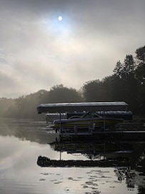 The lodge is on a very large, secluded lot, and families can enjoy their own private dock, 2 campfire areas (firewood included), and spacious lodge (5,600 sq ft). You will have plenty of space outside to play yard games and enjoy the view.