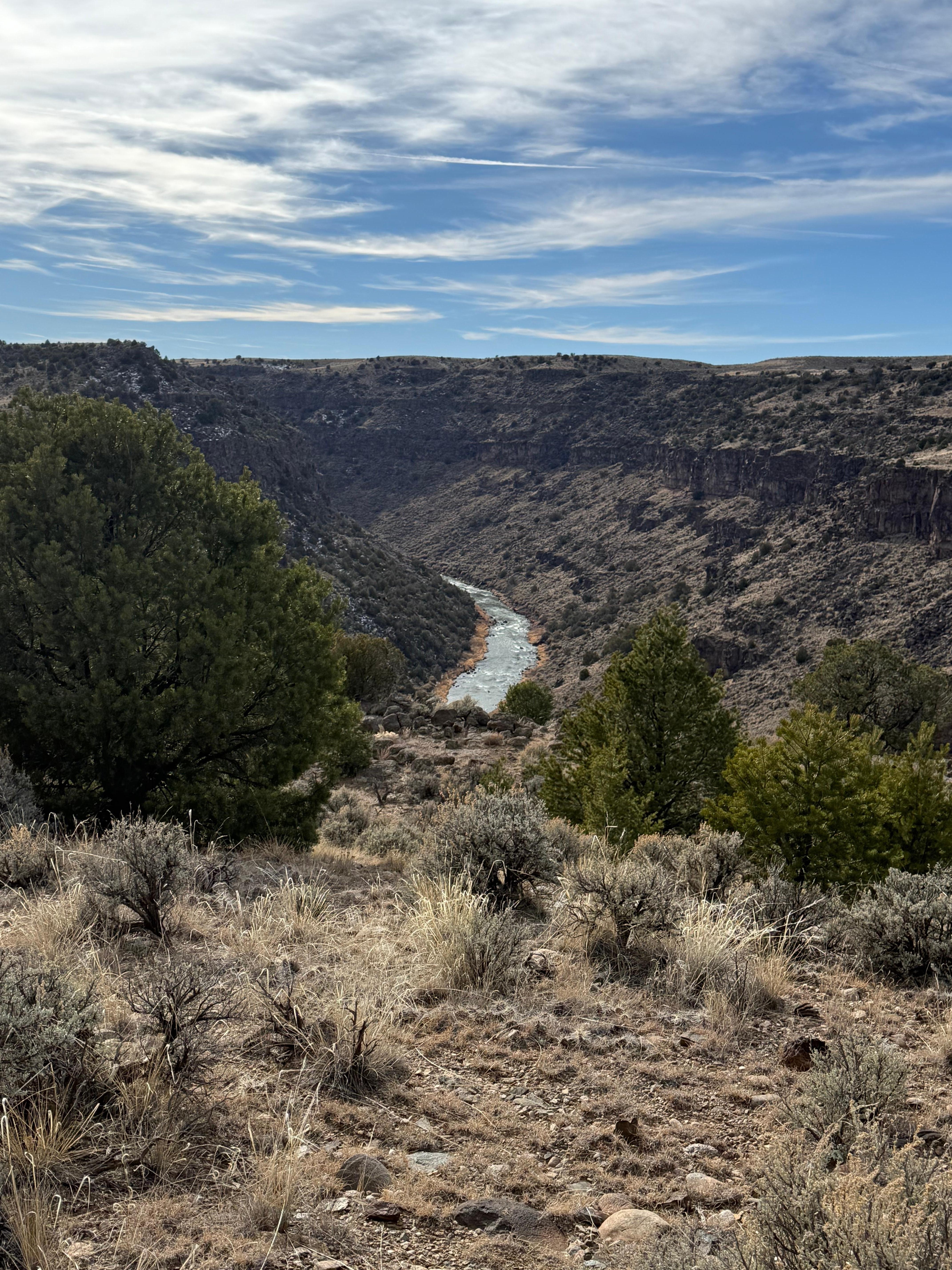 Una joya arquitectónica en quince acres privados de prístina alta mesa desértica, bordeando el Parque Nacional Garganta del Río Grande. Una obra de arte viva y respirante ubicada entre enebros, piñones y arbustos de salvia, que ofrece vistas panorámicas del valle y la garganta del río. Construcción sostenible pero con todas las comodidades de un hogar moderno. Un corto paseo a las aguas termales de Manby y senderos para caminar por la garganta del Río Grande.