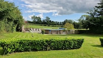 En la parte trasera de la propiedad, cada casa tiene un patio con una mesa y sillas de jardín, y una barbacoa. Plantación juicioso ayuda a detectar las dos áreas para una mayor privacidad. El resto del jardín es compartido por cada casa rural, y tiene un juego de columpios para los menores de 12 años, una gran zona de césped para juegos al aire libre, un sube y nuestro popular piscina sobre el suelo con su propia zona de estar. La piscina es climatizada, y aunque no es grande, sí proporciona una oportunidad para un refrescante chapuzón en los meses de verano. El jardín trasero está completamente cerrado, y al mismo tiempo le pedimos que todos los niños son supervisados en la piscina y la zona de la piscina, el propio jardín es seguro.