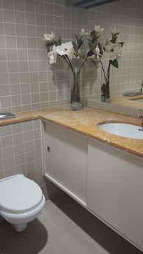 Guardarropa separado con inodoro, bidet, tocador con espejo grande