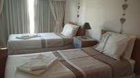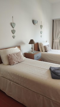 Dormitorio 1 - Camas gemelas con puertas que dan al balcón, aire acondicionado, secador de pelo.
