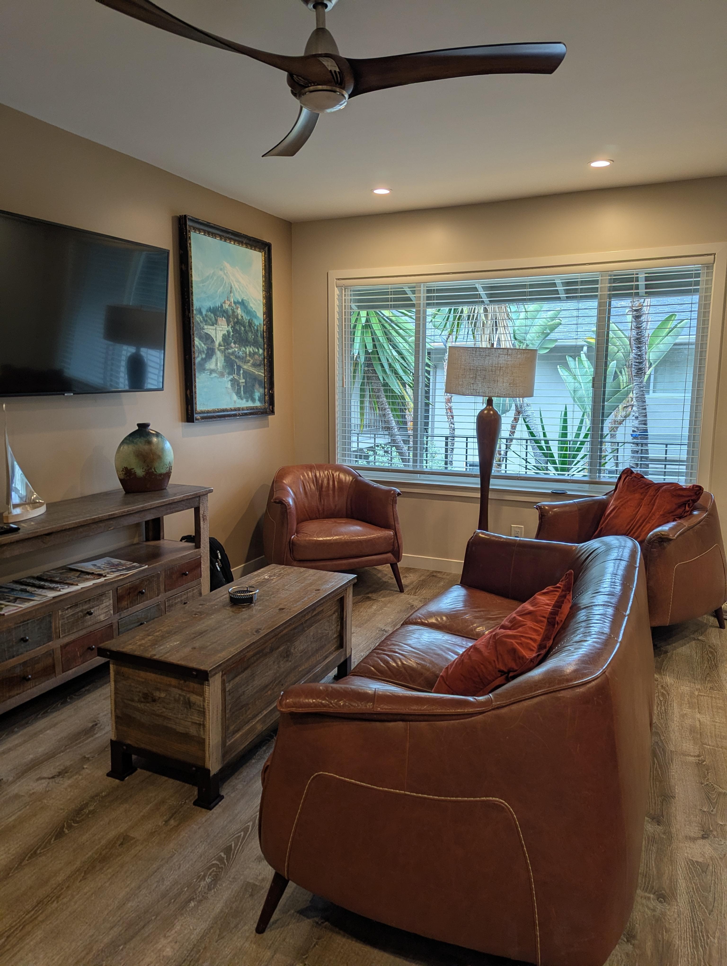 Este lujoso apartamento en el segundo piso fue remodelado con la más alta calidad y artesanía, y amueblado con una hermosa decoración de cuero. Los apartamentos Tropic Shores son un complejo de 16 unidades tranquilo y exuberantemente ajardinado y una de las mejores propiedades de Carpinteria. Su apartamento de lujo está ubicado a pasos de una de las playas más bonitas de California. Pise la arena y gire a la derecha, y entrará en un área de playa donde podrá disfrutar de un tranquilo paseo por una hermosa playa desierta.