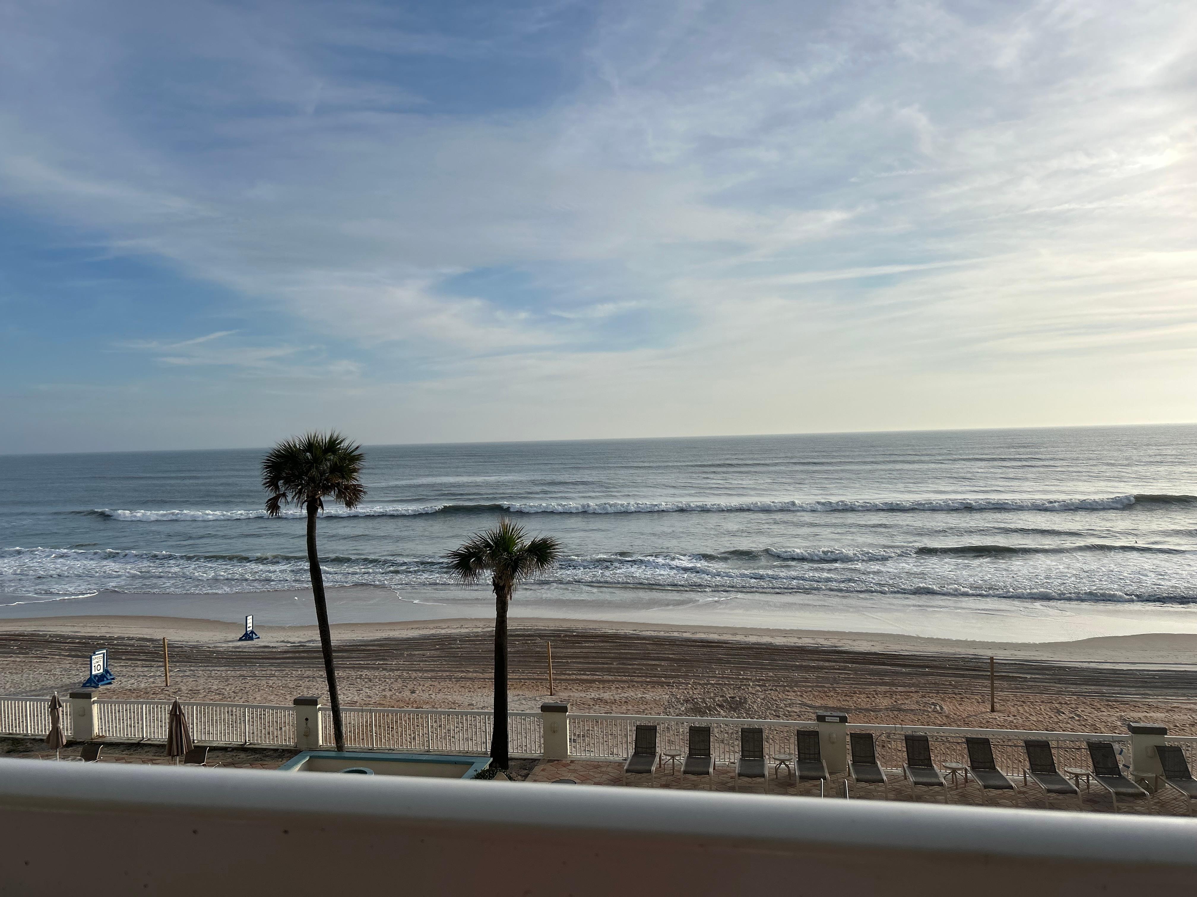 El balcón privado ofrece magníficas vistas del océano Atlántico y la piscina. Disfrute de una cálida taza de café junto con el hermoso amanecer.