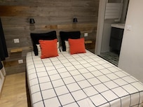-Un Dormitorio con baño contiguo (ducha, calentador de toallas) y un gran armario ropero / seguro.