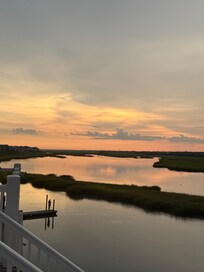 This fully renovated lovely three bedroom condo has a comfortable open floor plan with large windows and lots of light. The living and dining areas have water views from both the balcony and deck. Relax on the deck and enjoy the quiet beauty of the sunset across the sound. The peaceful waterfowl and tides of the sound are simply indescribable. You may even have a dolphin sighting during high tide. There are docks for fishing and outdoor grills for all your barbequing requirements. Three swimming pools, one of which is ocean front, and three tennis courts are at your disposal. The ocean front pool also has a deck with rocking chairs for a great ocean view. The beach is a short five minute walk from the condo. Ocean Isle Beach is a beautiful beach for walking, sunbathing, swimming, shell collecting, and photography. It's a mile walk to the center of the island, our favorite coffee shop, Drift, and a nice selection of local restaurants. The master bedroom has a king bed and a newly renovated en suite bathroom. The second bathroom, also newly renovated, can be entered from either the hallway or 2nd bedroom, which has two queen beds. The third bedroom has a queen bed and desk. We do not provide linen and towel service, but there are several linen service options available at OIB. The condo has smart TVs in every bedroom, as well as in the living room. Bring your log in information for Netflix, Prime, and most other popular streaming services. The kitchen is fully equipped for 8 guests who enjoy cooking or just heating up takeout from one of the many island restaurants. The large dining room table seats 8 comfortably with views of the sound, and the living room overlooks the fishing lagoon. In addition we have covered parking for two cars. No pets allowed, no exceptions. Ocean Isle Beach is about halfway between Myrtle Beach and Wilmington (about a 30-45 minute drive either way), close enough for dinner or shopping. Calabash and its famous seafood are just 20 minutes away. In addition there are about 20 golf courses within a 20 -minute drive of the island. Absolutely no smoking or vaping of any kind in the condo, on the balcony, or on the deck. The condo is professionally cleaned with all surfaces sanitized prior to each rental. From June through August, we can only accept Saturday to Saturday dates.