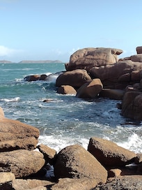 Waterfront house on GR34, beaches, shops on site TREGASTEL pink granite