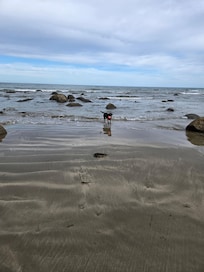 Sandy beach, safe swimming and snorkeling in front of bach, fishing, surfing, walking.
