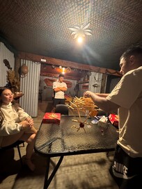 Cómodos, modernos y divertidos en un entorno privado y tranquilo. Uso inteligente de hierro corrugado, te-tree, cuerda, etc. Disfrute de nuestro tema de refugio en la choza / pescador con una gran colección de recuerdos de los 'viejos tiempos'. Algo para divertir a todos. 2 barcos de alquiler en seco FC430 (Fish City) disponibles en el sitio, ¡haga su propia competencia! Alguna experiencia necesaria. Brillantes instalaciones de limpieza de peces bajo techo y fumadores. NUEVA zona interior de horno de pizza y bar. Este ha sido un verdadero éxito con nuestros clientes habituales.