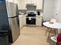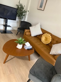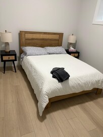 This newly built, spotless, and stylish 1-bedroom suite features a full bed and brand-new modern furniture. Relax in the cozy living room with a large flat-screen TV and Netflix via Chromecast.