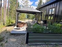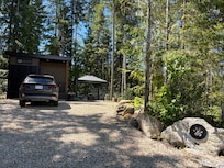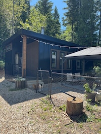 This charming 350 sq.ft open concept tiny cabin in Eagle Bay is the perfect home base for your trip. With cozy heating, A/C, WiFi, king size bed, full kitchen, dishwasher, filtered water, barbecue, washer and dryer this nice retreat has everything you need. The bathroom features a 3 piece bath with shower, towels, shampoo, soap and a hair dryer for your convenience. Nestled in a secluded park like setting you can kickback, relax, and enjoy everything Eagle Bay and our cabin has to offer. If a morning walk is your style step out the door and enjoy a beautiful stroll on Rocky Martinson trail. Spend the afternoon playing in/on Shuswap Lake bring your paddleboard, kayak, swim goggles and sunscreen Shannon Beach is a 6 minute drive. Need a break from the sun go across the street from Shannon beach and enter 4.5 km of wooded forest hiking/mountain biking trails. In the evening relax outside under the covered gazebo by the propane fireplace or under the stars by wood burning fire pit (when fire regulations allows) A lit fenced yard can accommodate your small to medium sized dog. This is a quiet neighborhood for guests who want to get away from city noise to read and relax.