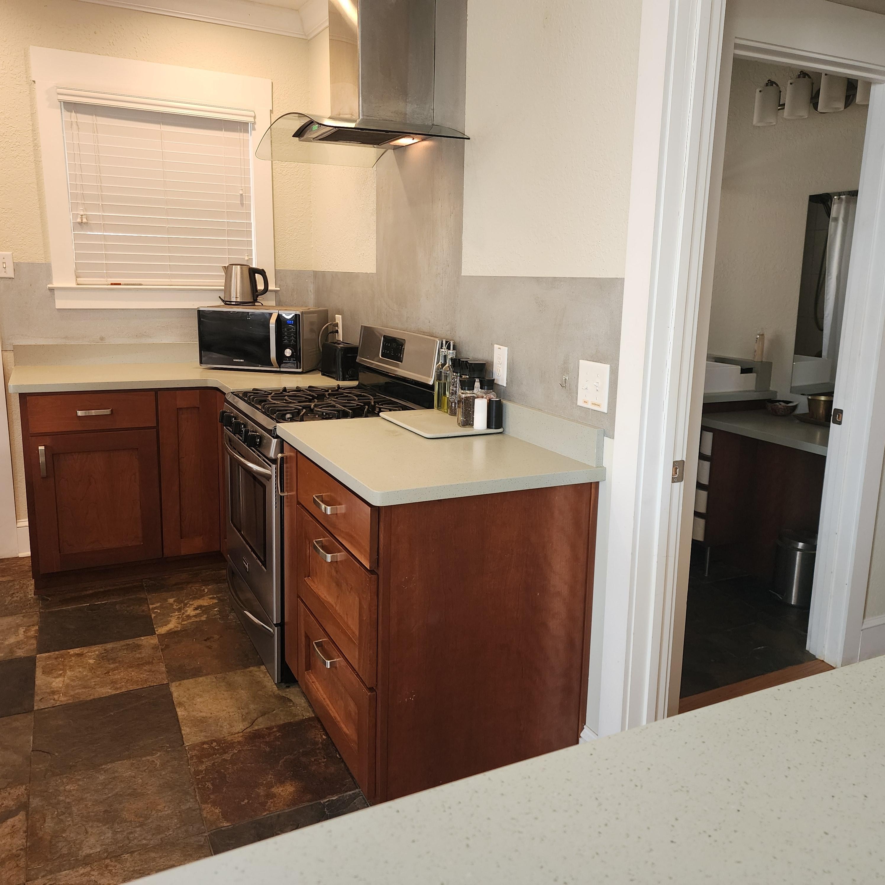 - Tea kettle, blender, toaster