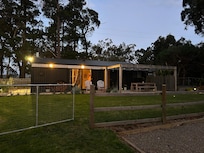 The Little Black House is a 2 bedroom cottage set at the top of Splitters Rest Farm in Main Ridge on the Mornington Peninsula. Beautifully furnished with polished concrete floors, kitchen, bathroom flat screen TV, wi-fi and patio with outdoor table facing a veggie garden that guests are welcome to and rolling views of the farmland.