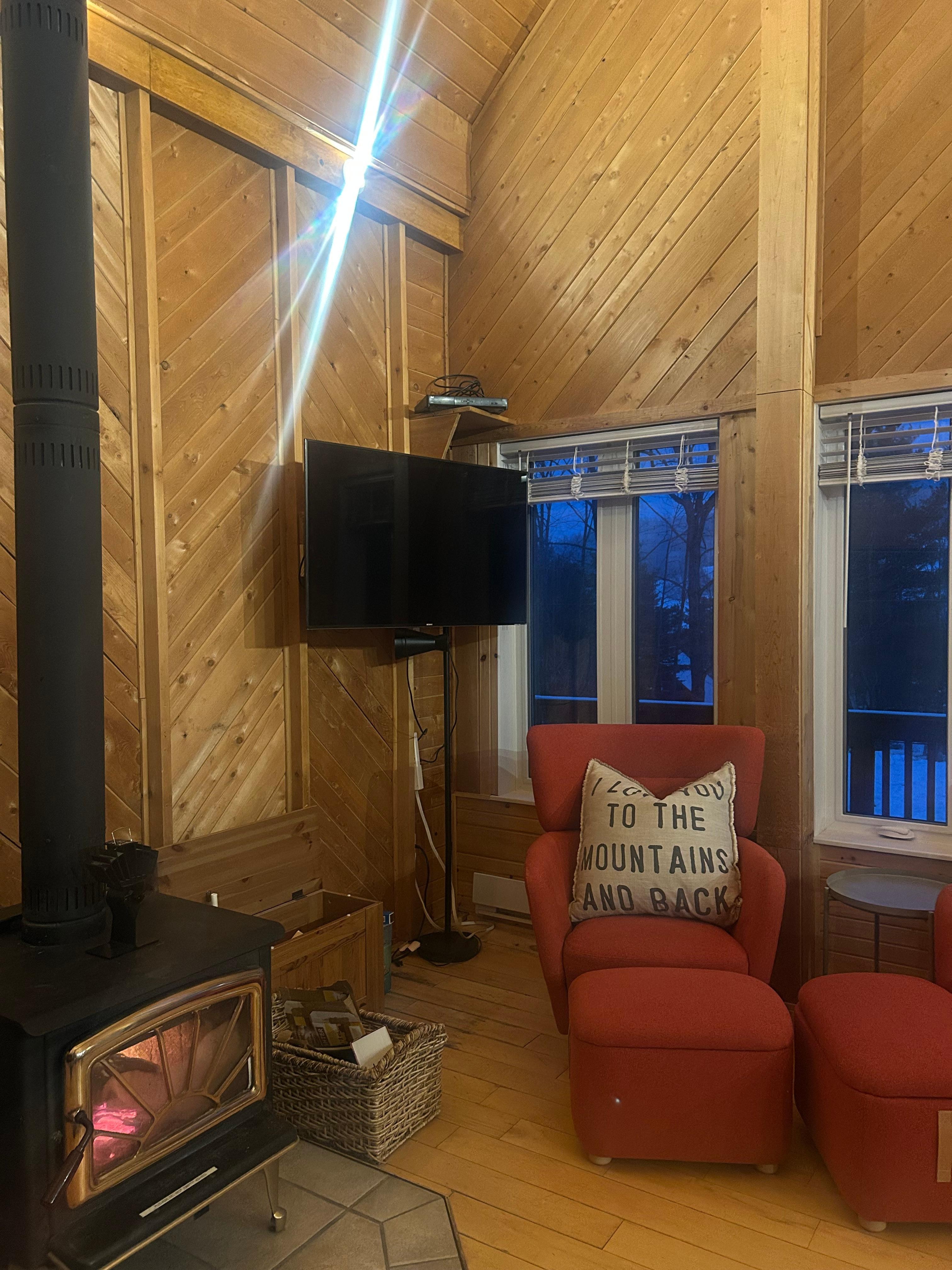 Escape to comfort and nature at our cozy, modern chalet nestled on a private 1-acre treed lot. Perfect for families or groups, this spacious retreat sleeps up to 6 guests and offers a blend of rustic charm and modern convenience. Enjoy evenings by the wood-burning stove, stream your favorite shows with fast Wi-Fi, or take in the peaceful surroundings on the wrap-around deck.