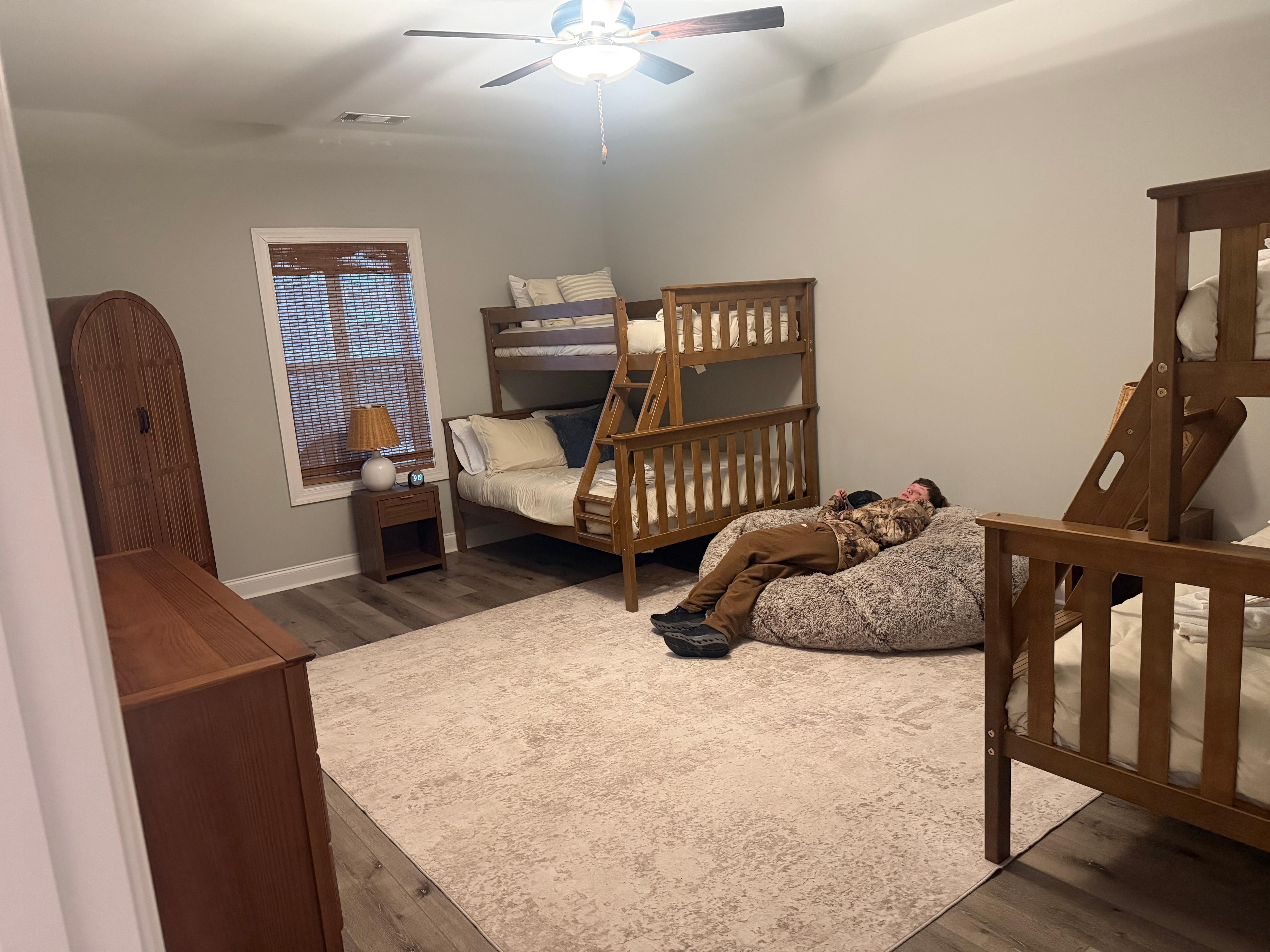 - Bedroom 4: 2 bunk beds (twin/full)