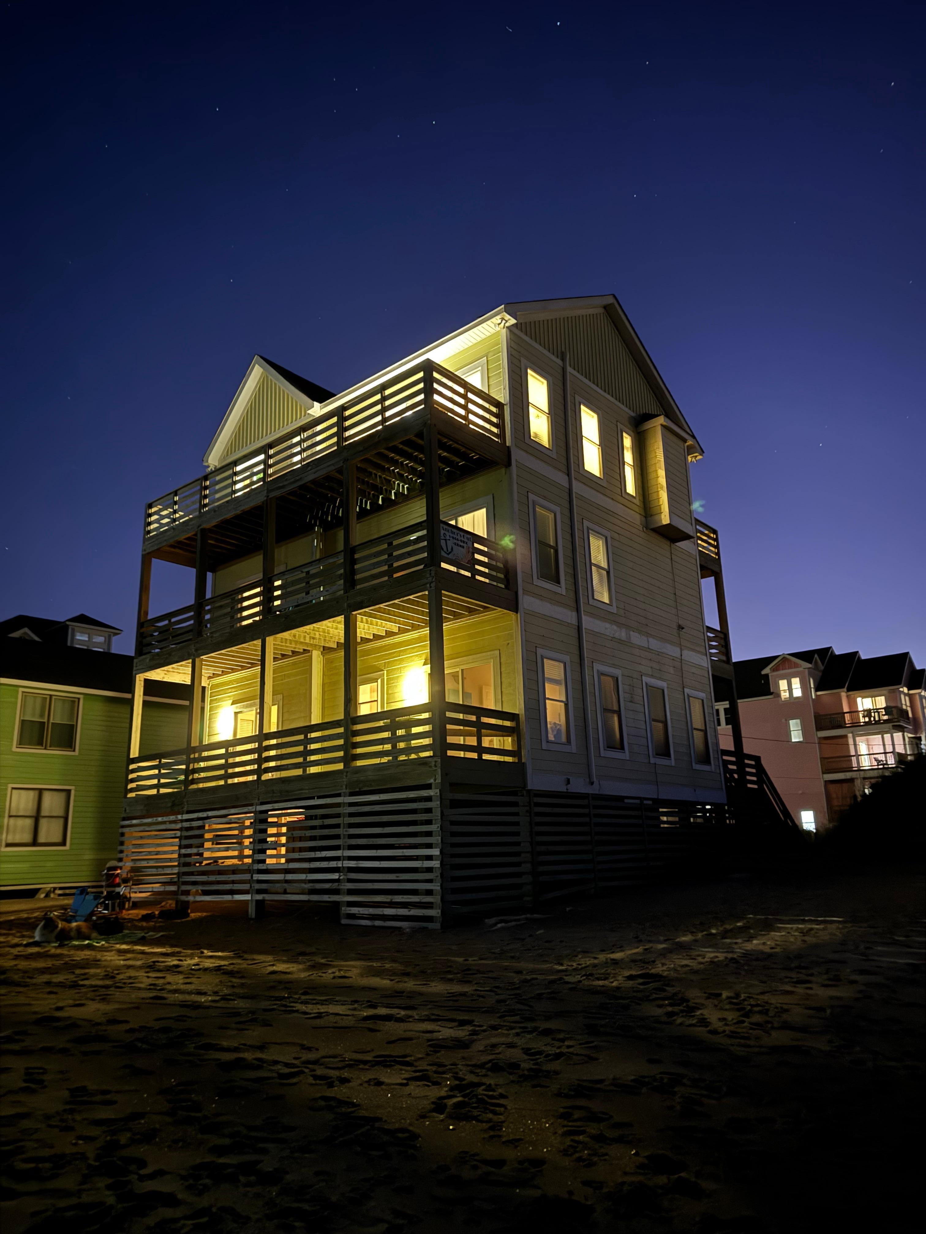 Beachfront home in Rodanthe, NC. 5 bedrooms (all masters), 5 full and 2 half baths. Sleeps 10-12. Pet friendly, Game Room. Theatre Room, Elevator to top level kitchen. 6 decks, 3 on the ocean side and 3 on Pamlico Sound Side. Watch the sunrise and sunset each day. Almost every morning you will see dolphins swimming and feeding so bring your binoculars. Private pool and spa. Optional Pool heat at additional cost, $500/wk. High speed Internet is provided along with basic cable and ROKU devices for each of the 7 TVs. Home is handicap friendly but the driveway, being that it's on the beachfront, tends to get sandy. We have a couple of portable 1ft x 3ft platforms to assist guests who may have trouble walking in the sand. A 4x4 vehicle recommended particularly after a strong wind event.