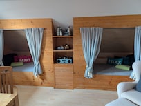 Los cuatro no somos un problema, las dos babosas en la sala de estar y una habitación separada con una cama doble te esperan después de largos días en el maravilloso aire del mar. Estaremos encantados de proporcionarle una cuna bajo petición.