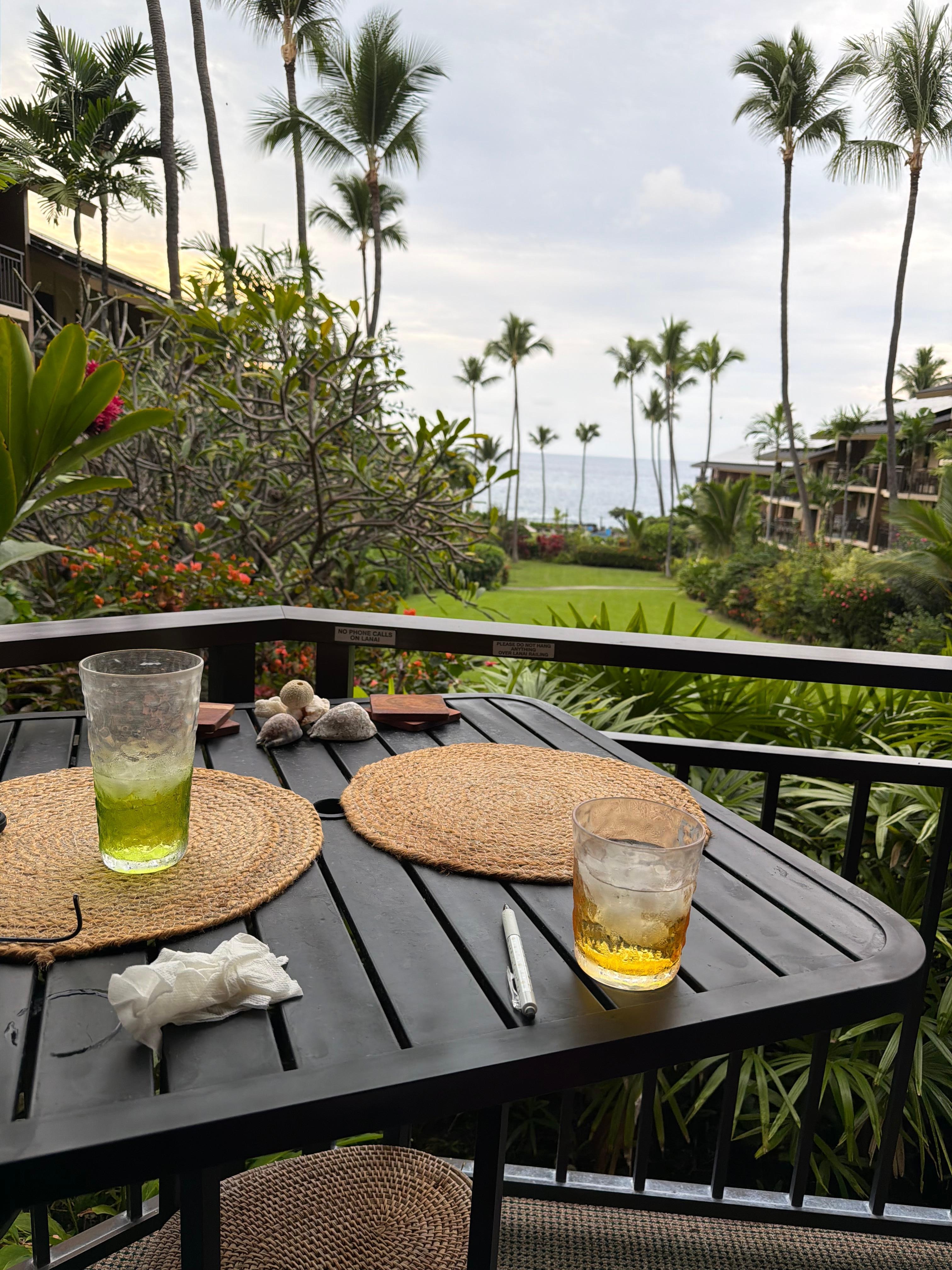 Beautifully landscaped and offers some of the best sunsets and ocean views. Our recently renovated condo/lanai sits directly facing the ocean. You can even sit inside on the couch and see the ocean from it, we make every attempt to NOT exaggerate the pictures. Relax with the pool, hot tub, ping pong or tennis. There is also a small library of shared books. The grounds itself is 5 stars... Think botanical garden.