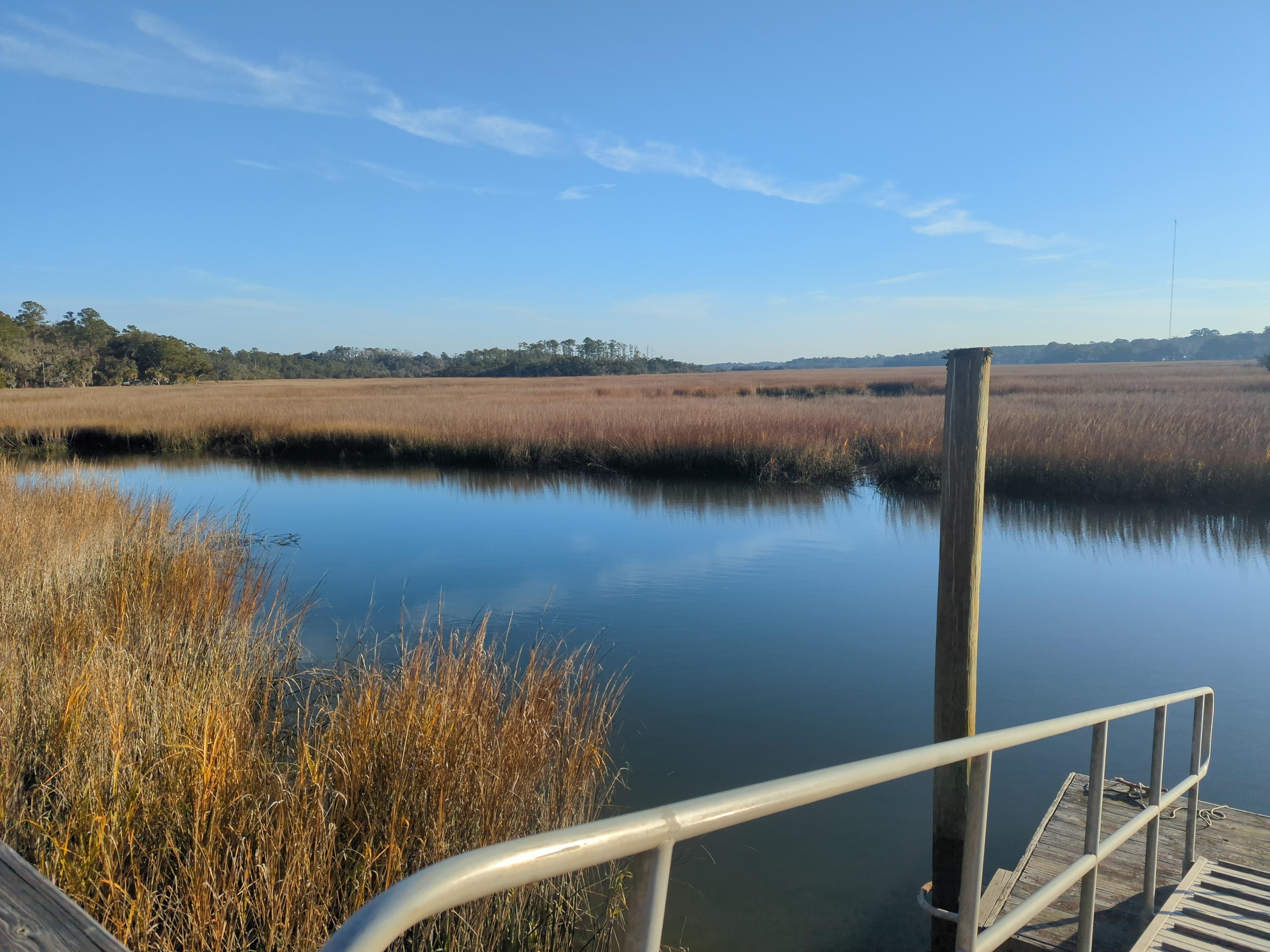 This property has an expansive Eastern view of the marshes and White Chimney community. You can sit on the porch or the dock and watch the cars coming in and out of Shellman Bluff. It is so relaxing.