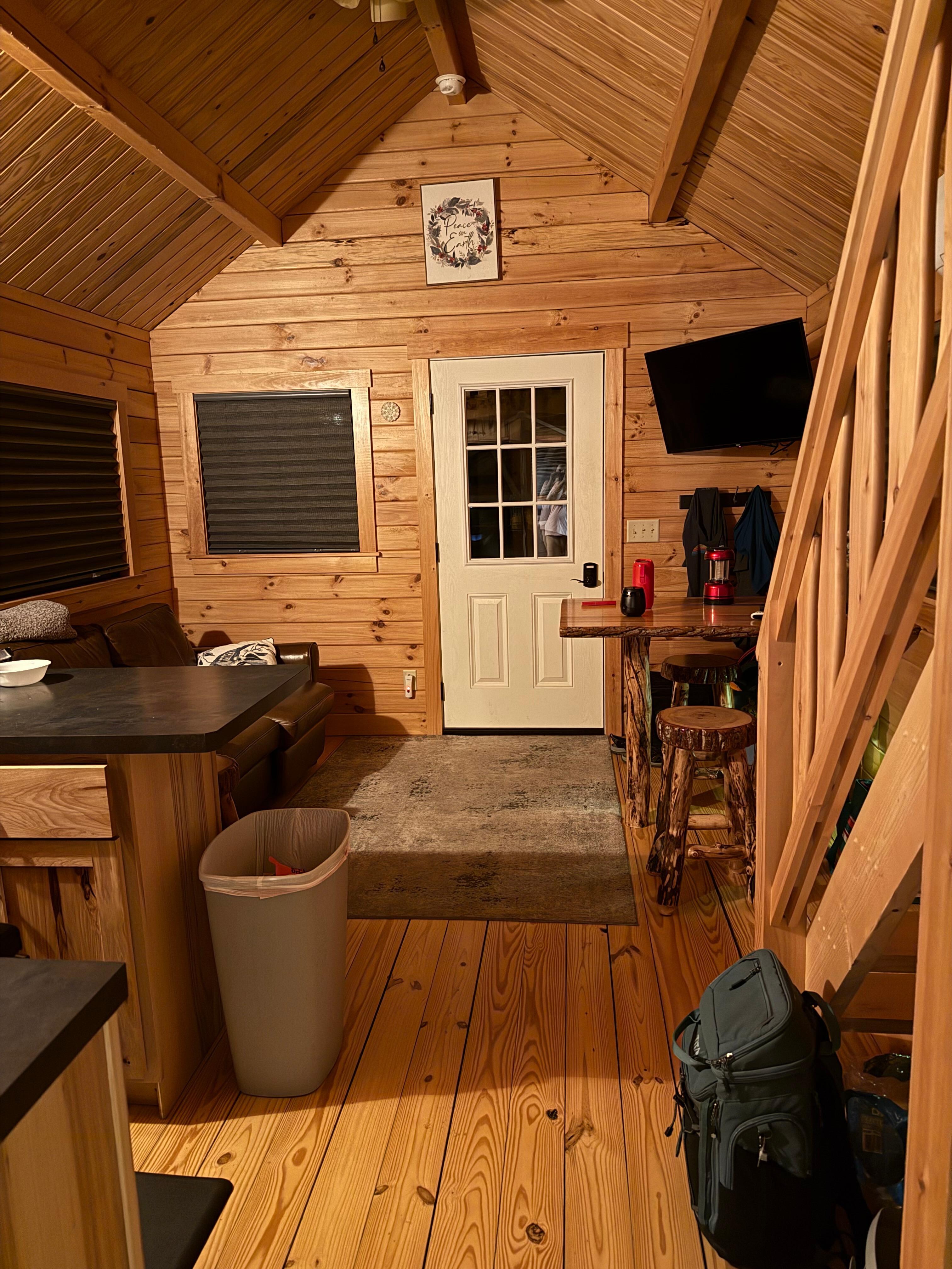 We offer a contactless check-in system so there's no key or office you have to go to. With an individual lock box code you are able to go directly to the cabin and being your getaway on your own schedule.