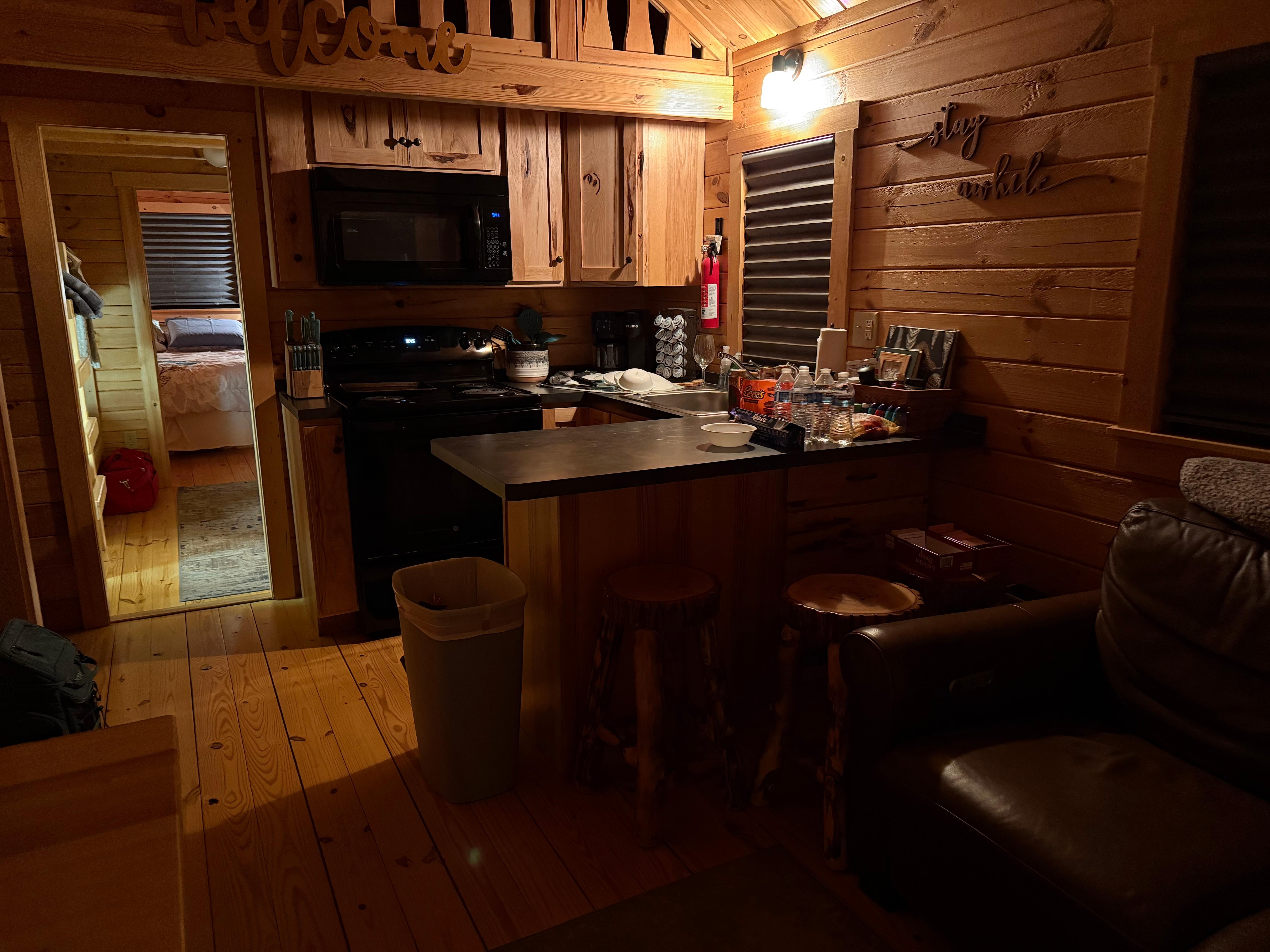 Water – Our water is sourced from our private well and is filtered. However, at times it does have a salty taste. The filter isn’t always able to remove all sodium. We highly recommend bringing some bottled water.