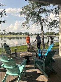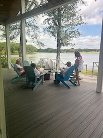 Beautiful sunsets over the lake, fishing from the back yard, feels secluded but right in town, close to First Monday.
