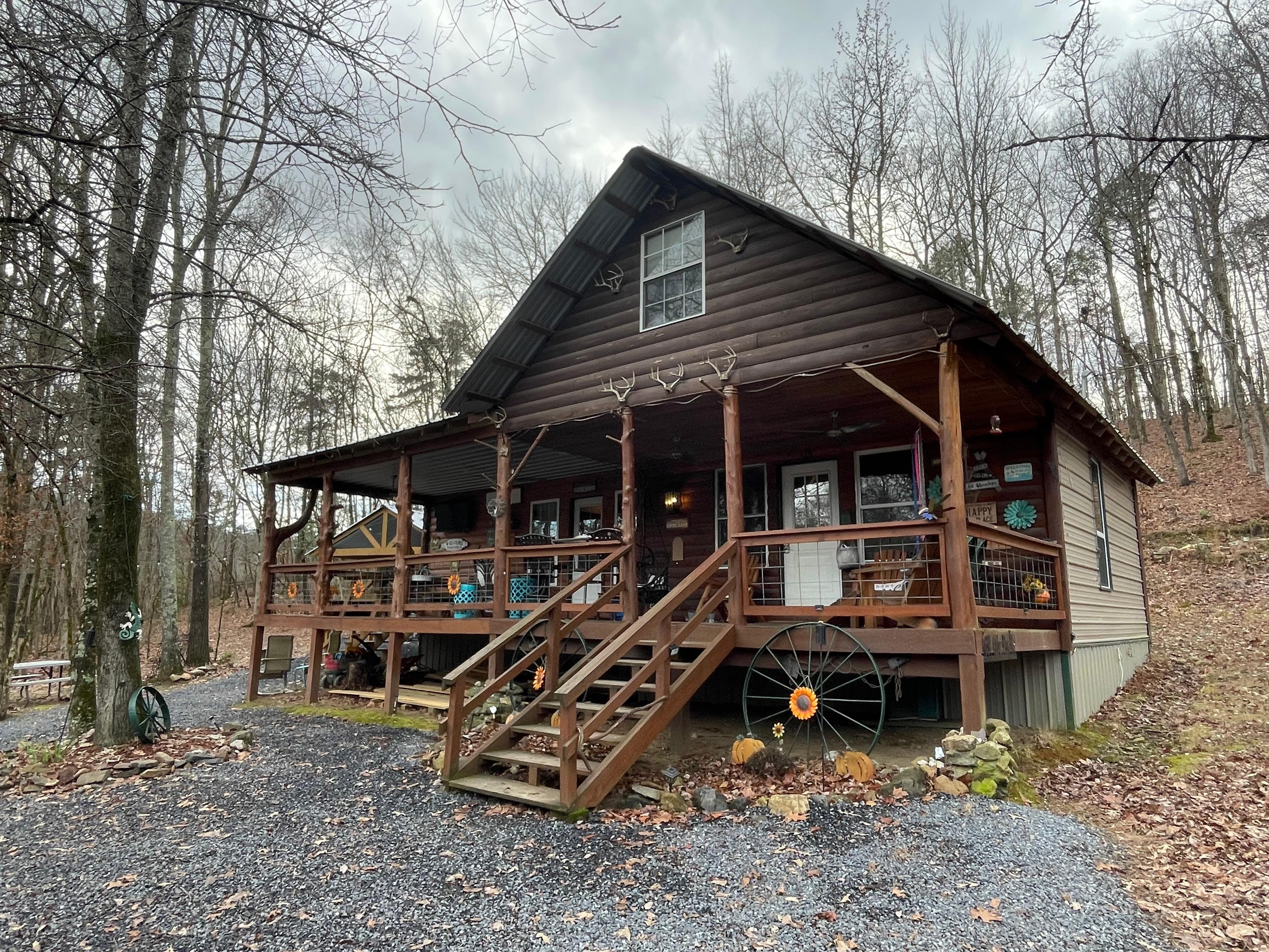 There is nothing like the peacefulness and the clear mountain water in the Ouachita Mountains. We are privately owned just 4.5 miles past Camp Albert Pike Recreational Area. Children are free. We do have a small RV park (5 spaces) for our personal use, we often stay in them during the summer months with our grandsons, that you will drive through to get to the cabin. You Right now are a distance from them and it does not interfere with your view of the creek or space. We want to provide a family environment that everyone enjoys so they will make new memories that will last them a life time. We have one cabin available for rent that will sleep 11. This 3 bedroom, 2 bath, loft-style, cabin is just the cozy, luxurious retreat you need. You are surrounded by 21 private acres butted up to the National Forest in the middle of the beautiful Ouachita Mountains. Sit on the LARGE COVERED porch to take in the breath taking view, or gather your friends and family around the fire pit to share stories and roast hot dogs and marshmallows.