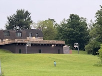 - Outdoor basketball court (full court) with large floodlights for nighttime