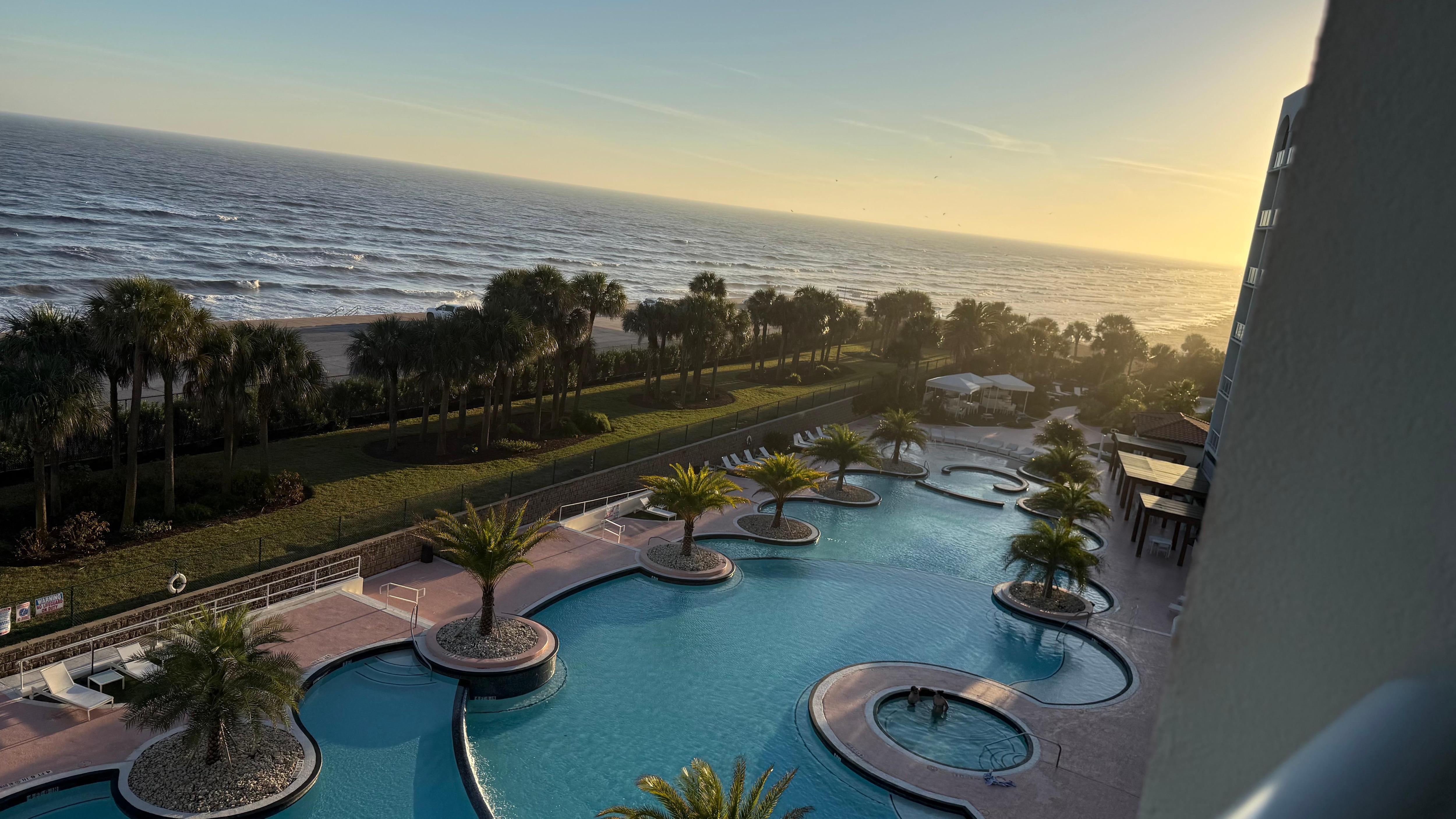 Beautiful view from the balcony! The pool and lazy river was perfect for my grandchildren!
