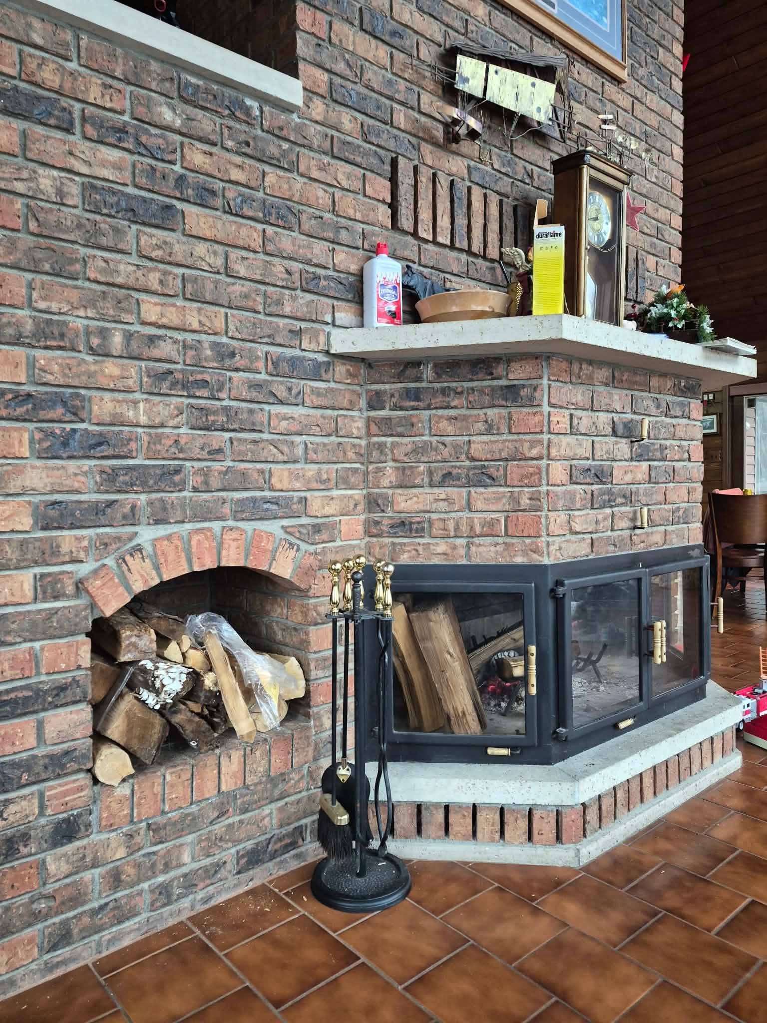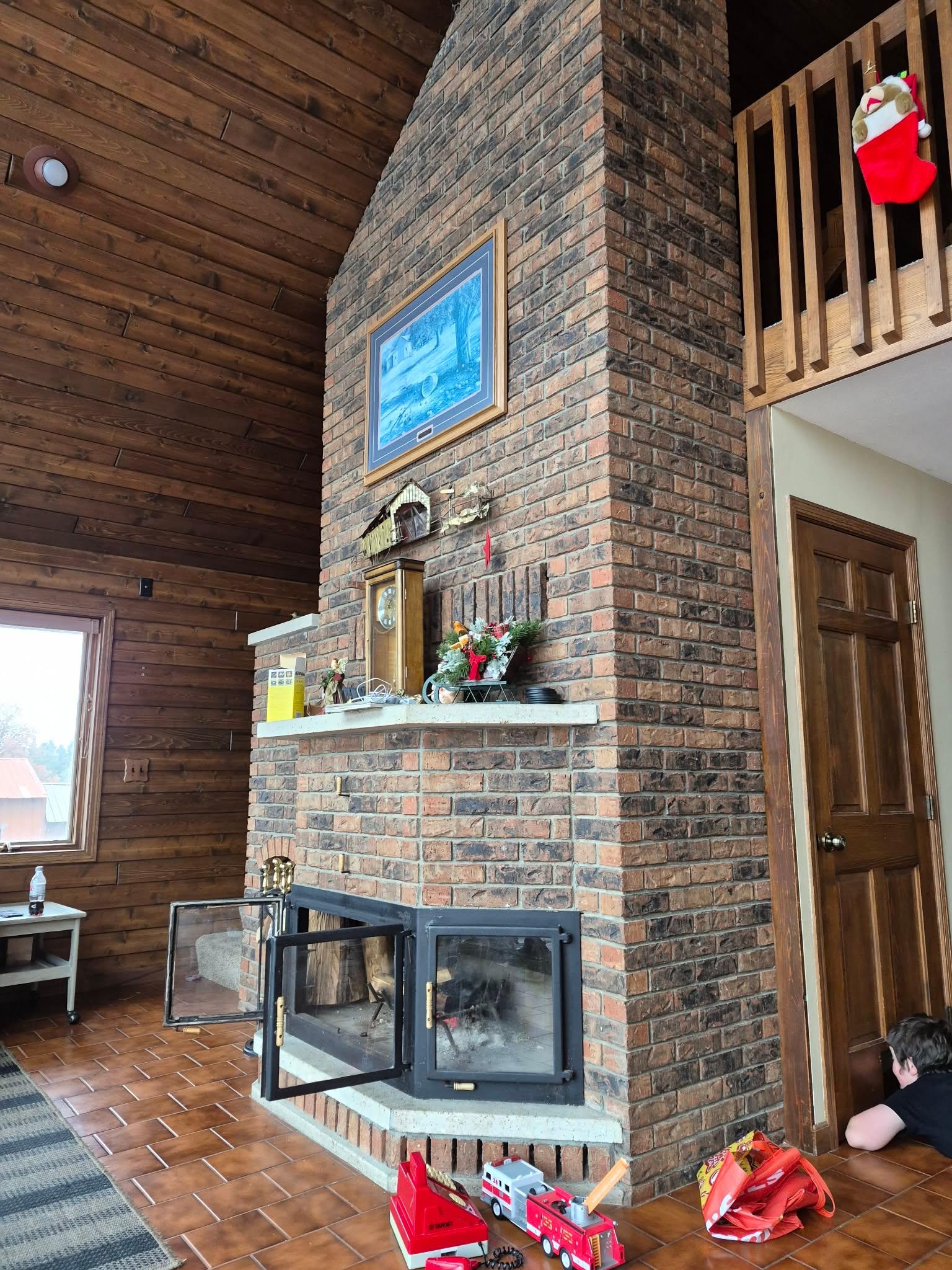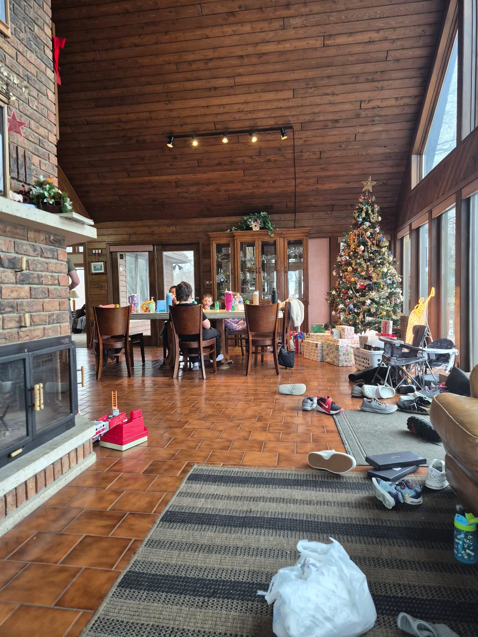 Fácilmente con capacidad para 19+ personas. A-frame casa de estilo con un montón de ventanas. Comedor con capacidad para 12 personas, además de espacio para mesa adicional para asientos para 24 totales. Actualizado cocina, y sala de estar con chimenea de leña. Gran sala grande con TV, DVD, VCR, y un montón de selecciones de películas. TV vía satélite y ADSL a Internet WiFi.
