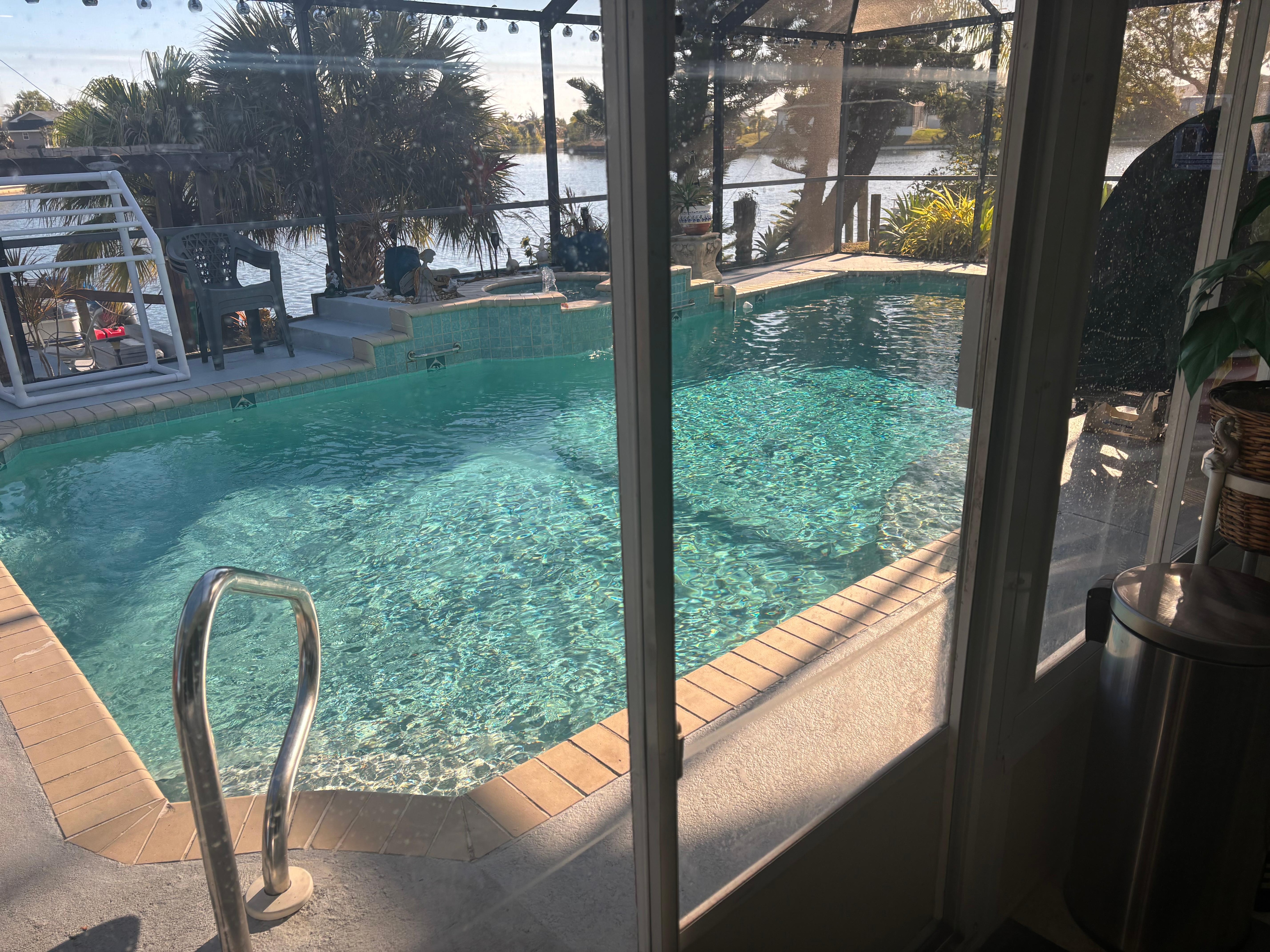 Perfect three bed, two bath home that is handicap accessible (if needed). Enjoy the large lanai that is air conditioned or open the windows to the pool that even has a handicap lift! Enjoy the awesome sunrise and sunset while relaxing on your private dock with canal and lakes to the east and west. Enjoy fishing just outside your back door, relax in the pool, or enjoy a nice bike ride (3 bikes provided) around the neighborhood. Fully stocked kitchen, fishing poles, beach cart, floats, towels and beach chairs. Close to beaches, restaurants, and shopping. Everything you need for a perfect vacation!