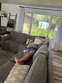 With the capacity to comfortably sleep 11-12 guests, this spacious abode is perfect for multi-generational families or groups of friends seeking a shared getaway (3 bedrooms–king, queen, 2 sets of bunks as well as a full size daybed in the living nook, an additional fold out memory foam mattress, and another daybed in master). The interior seamlessly blends modern comforts with charm, providing an inviting atmosphere that instantly feels like home.
