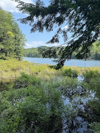 SUMMER swim crystal clear water, enjoy virgin trout fishing just outside your door. Sail, boat or canoe on the Pond, breathe in the view before an evening cookout and enjoy bonfire with families and friends. (Dock, Boats and other accessories such as paddle/oars and life jackets are to be shared by Cabin#2.)