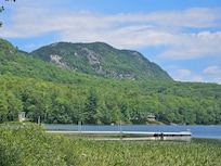 Nestled in a pristine mountain valley, this upscale, waterfront property will take your breath away! The lush (3) acre setting includes, a spacious Grand House (cabin 1) that has a waterfront and mountain view through out the entire house. The architecture of the home interiors is an open concept; T&G pine walls, stone and pine floors, high beamed ceilings w/sky lights and lots of glass and decks to enjoy the views. Each season on the Pond is a truly, magical experience.