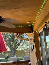 My property is comfortable and cozy. The open floorplan kitchen and family room is where people gather. The swimming pool can be seen from the family room, kitchen, living room via the large sliding glass doors. A covered patio so if you get a little rain you are sheltered and can use the stack pipe propane heater. Uber can be called for rides to the entertainment areas.