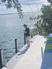 Fabulous open water from 35 foot seawall with dock posts, cleats and fish cleaning table, and swim ladder. Cook your catch on the outdoor grill or eat inside still enjoying the relaxing ocean view from the bright great room facing the canal. Kitchen has beautiful wood cabinets and breakfast bar.