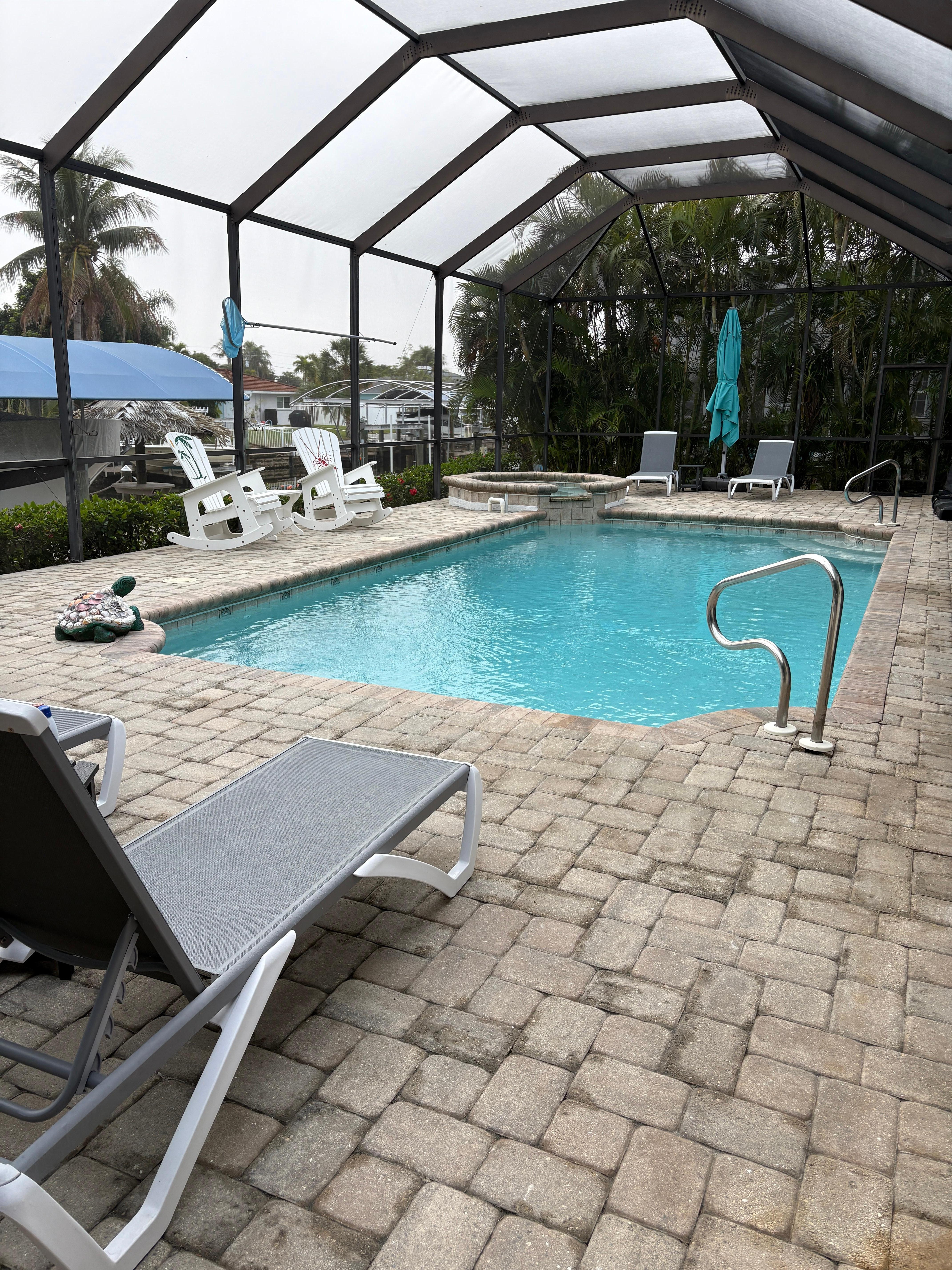 The Villa Wolstar has 3 bedrooms, Den/office and 2 bathrooms. At the huge screened lanai there is the big electric heated pool with spa.