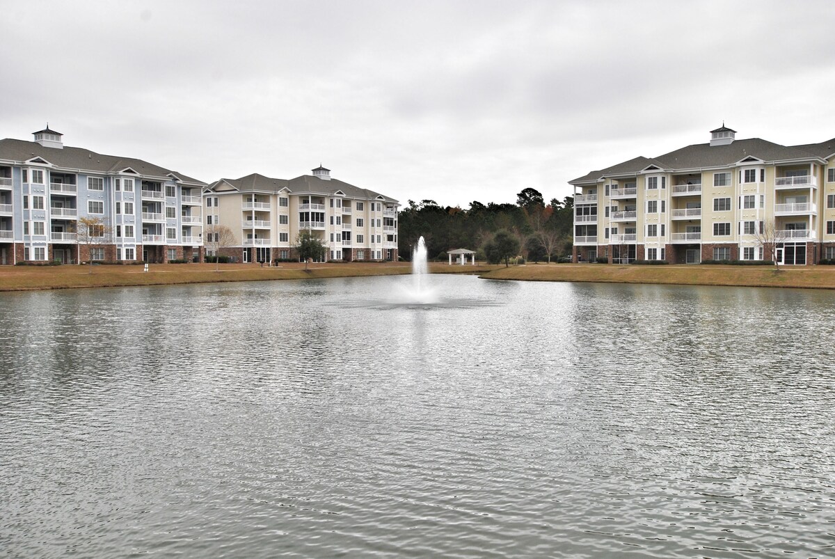 Come visit our Home Away from Home at the Beach! It is a 3rd floor (elevator building) 3 bedroom / 2 bath Golf Villa located in the newest Magnolia Pointe section of Myrtlewood Golf. This community boasts 7 swimming pools, a community center, and a golf course. Enjoy the views from the screened-in balcony overlooking the lake and pool. This unit features 2 King beds, 2 twin beds, and a queen sleeper sofa (sleeps 8). New flat-screen TV's in all rooms. Full-size washer and dryer in unit. Free WIFI and cable.