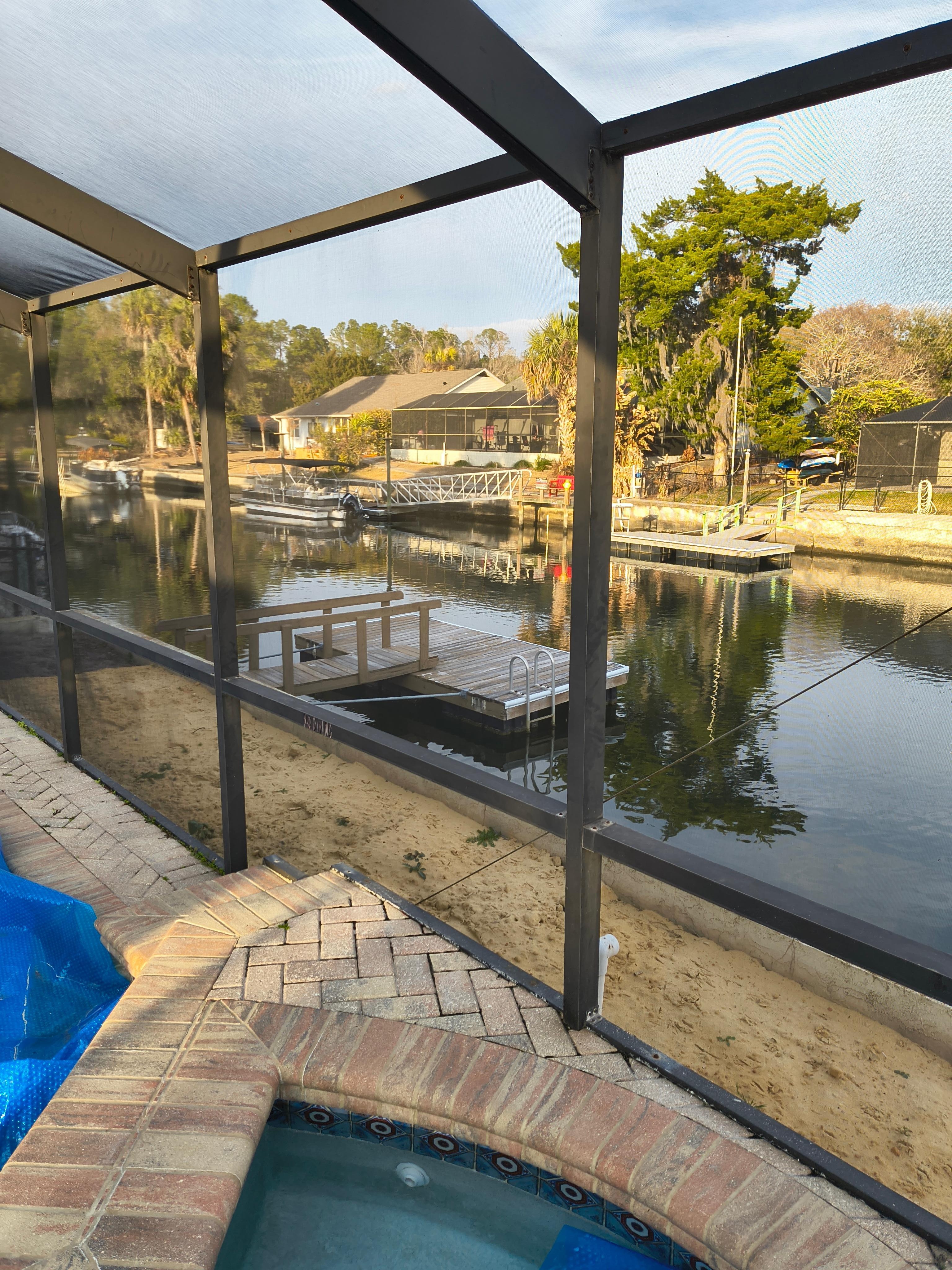 Make yourself comfortable in any of the three spacious bedrooms. This waterfront home sleeps 8 people (Max 6 adults). The pool overlooks the wide deep water canal. Bring your boat or you can launch our kayaks right from the floating dock. There is also a boat launch just 3 minutes away from the property.