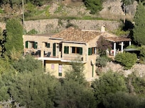 Esta acogedora casa está situada en el pueblo de Deià las bellas artistas. Un pequeño sendero conduce por un pequeño puente y después de unos 120 metros de la casa, que fue construido en las antiguas terrazas de olivos y por lo tanto, pero tiene una magnífica vista del valle de Deià en la gigantesca roca del macizo des Teix. Una escalera conduce desde el camino hasta el porche y la puerta frontal. La mesa de piedra bajo la pérgola ofrece un lugar con sombra. Aquí puede ser a la parrilla o disfrutar con una copa de vino al atardecer, que puede iluminar el Teix en todavía otros tintos.