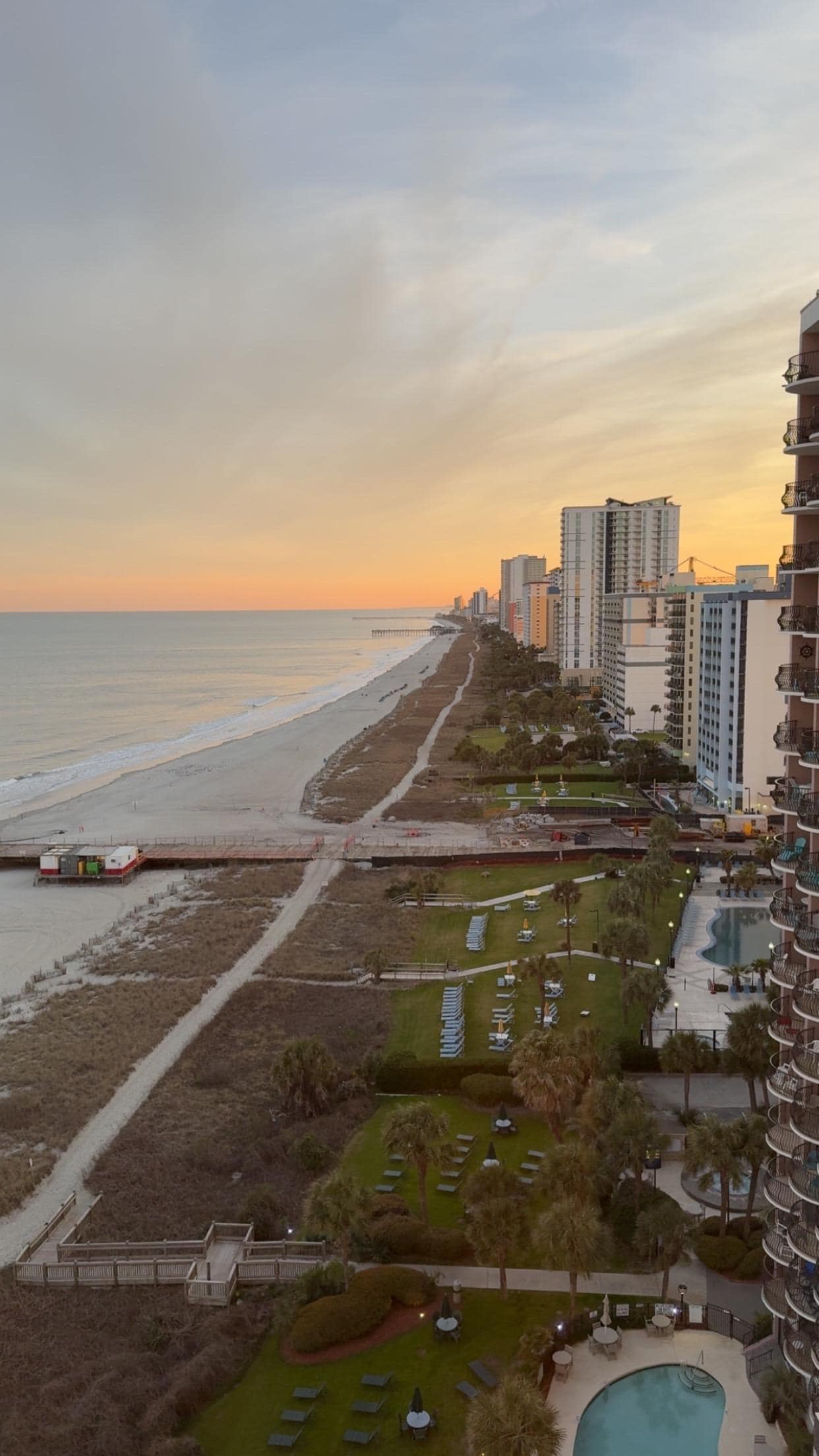 Amenities at The Carolinian Resort include beach front access, two swimming pools, a baby pool, and a lazy river. There is also access to the rooftop water amenities at the resort across the street.