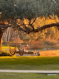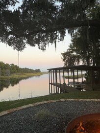 We have 5 cottages on same property all of which share the lake area, fire pit, lounge chairs, hanging chairs and our boat dock