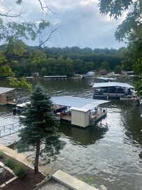 Lake front is located at 3mm at big Niagara in a cal-de-sac which is quiet and fun swimming for the family. Lots of privacy because we are at the back of a cove. Easy to swim off the dock, nice swimming platform. Can hook up boat on side of dock. Shared drive through lot with 1 neighbor. DO NOT BLOCK DRIVE THROUGH. Enough space on our lot for 3 or 4 vehicles, depending on size of your vehicle.. Additional parking on top of lot. Double deck with wrap around deck on top level. Barbeque grill on deck. Fire pit in yard. NO FIRE PITS OR CHARCOAL GRILLS ALLOWED ON WOOD DECK. No pets. The two full baths are new walk in showers. Professional cleaning service to provide a clean environment.