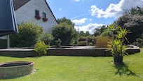 Nuestro jardín lo invita a disfrutar plenamente de sus vacaciones con sus diversas áreas de descanso, el área de fogata, el estanque de natación y el área de barbacoa.