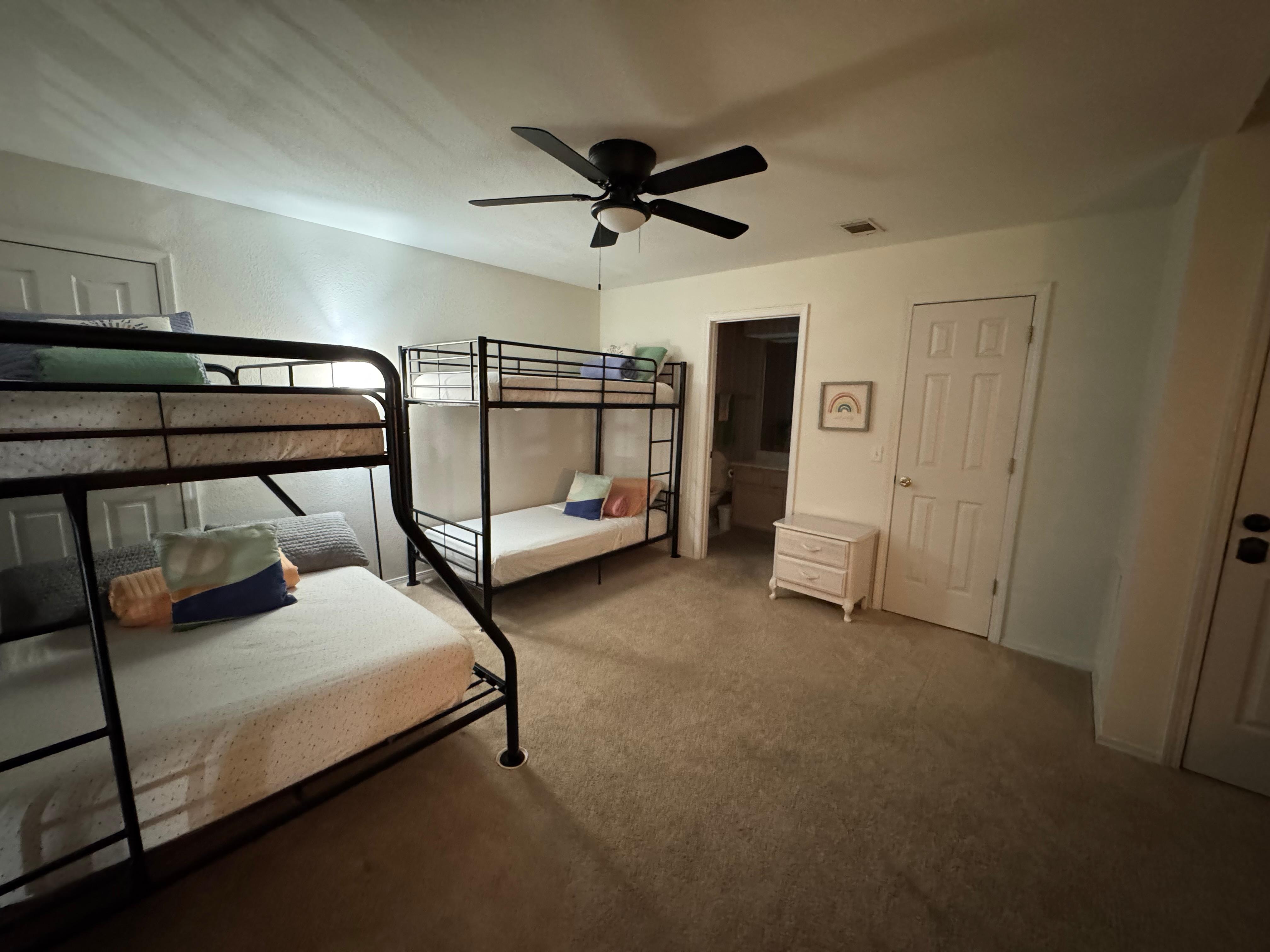 Our beds are brand new in 2022! The main area features 2 large bedrooms with brand new KING sized beds and luxury linens. Turn in early to watch TV in bed or enjoy sleeping late in the morning with the black out curtains. A KIDS bunkroom is upstairs with their own smart TV, Nugget couches, beds, and best of all, their own full bath!