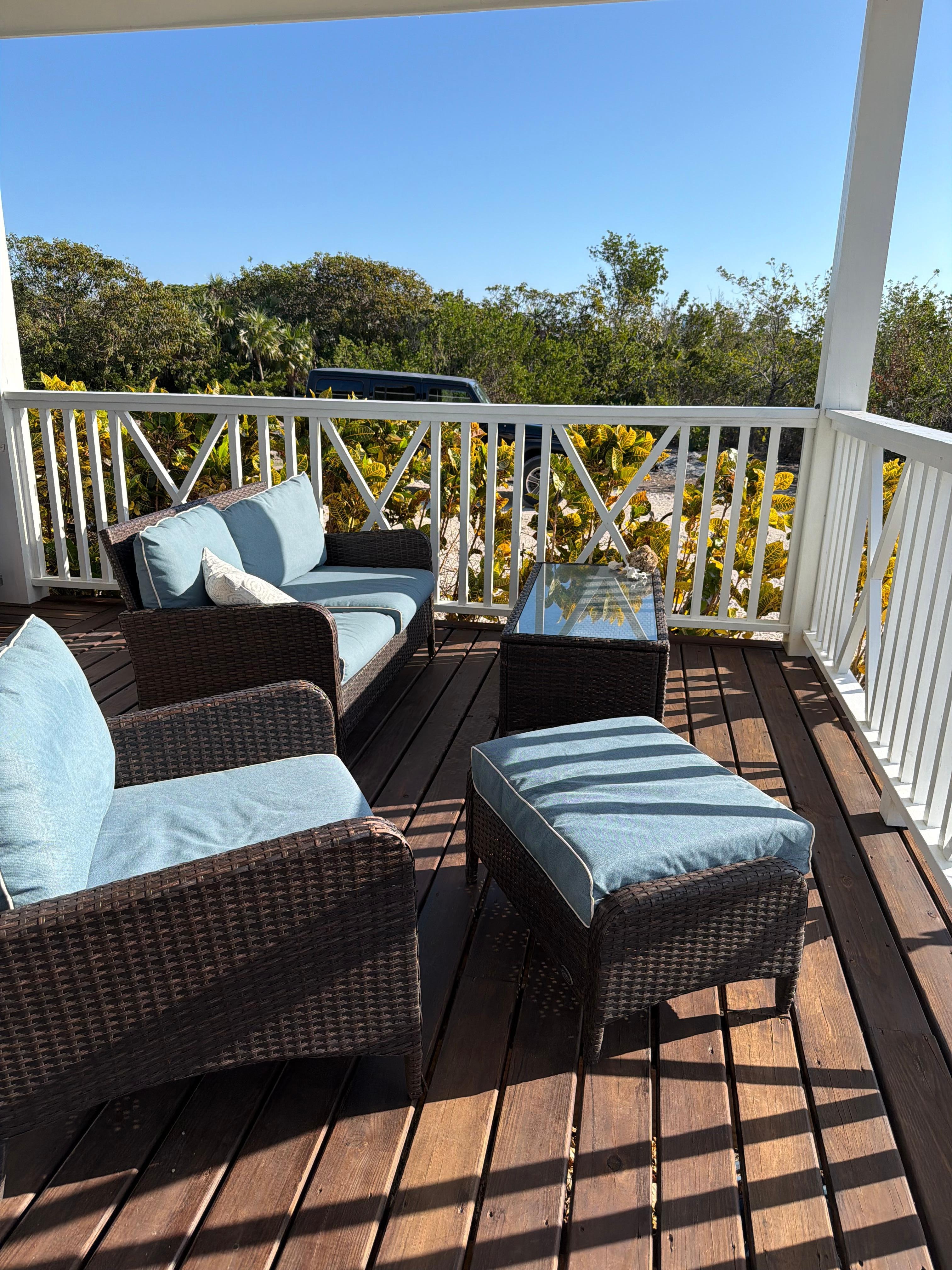 - a large porch: 2 seat-jacuzzi, lounge chairs, chair and ottoman, love seat and coffee table