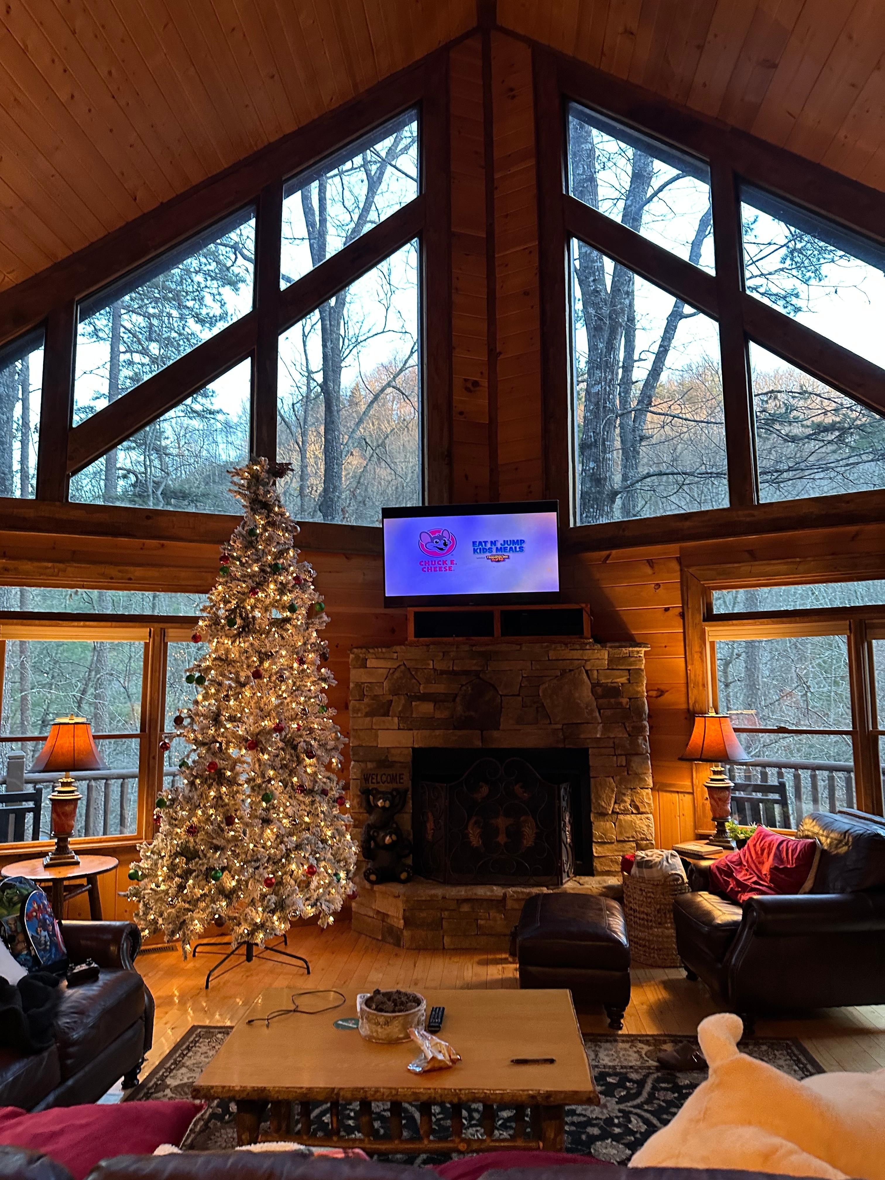 We enjoyed every part of our long weekend in Grizzley Gulch! The fireplace out on the deck and the fire pit were wonderful! Loved rocking on the porch while feeling we were in the trees too! The hot tub in the gazebo was so nice, and there was even a heat lamp to warm up our area. Blue Ridge had a fire and ice chili and ice sculpture event that made downtown Blue Ridge quite busy - all the shops were so warm and inviting! We had a great time, enjoyed all the extras in the cabin… hope to be back!