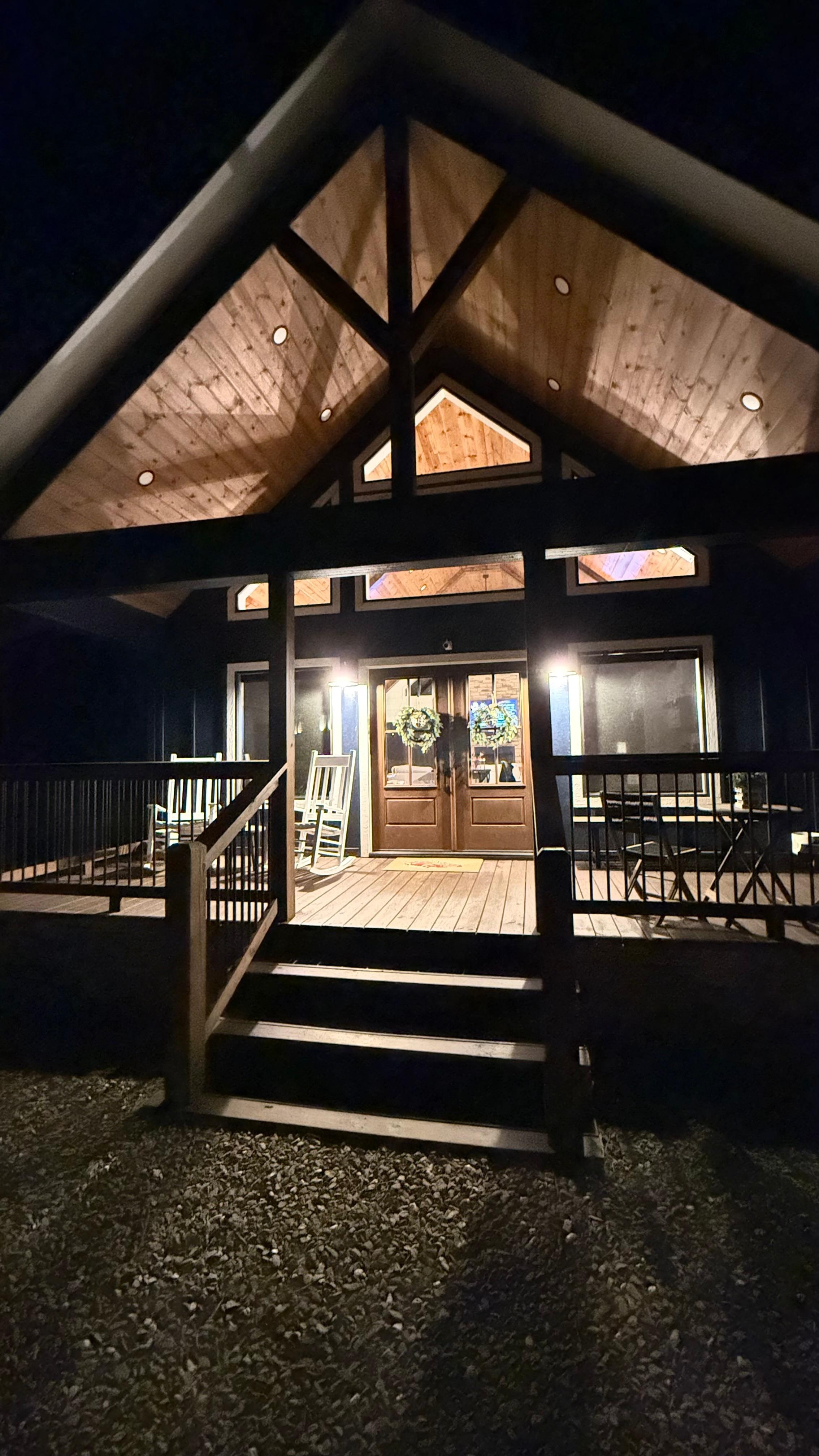 For the safety of our guests, we have installed exterior cameras; one is above the main entrance, facing the driveway, and the second is facing the back doors cabin entrance. They are 24/7 motion activated and record video and sound. We do NOT permit the following at any time:
