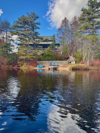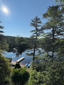 Increíble pedazo de propiedad con vistas al lago desde dos lados de la casa y hermosa vista al estanque desde el frente de la casa, tres lados de la casa tienen vistas al agua. Un lote muy boscoso donde abunda la privacidad. Tu propia playa privada con el uso de nuestra canoa y bote de remos. Siéntese en la enorme terraza cubierta de 50 pies y relájese mientras observa su propio paraíso privado. La casa tiene 6 habitaciones privadas y 3 baños completos (y un inodoro fuera de la sala de grabación), además de un altillo. Una gran sala de recreo con mesa de billar y bar.