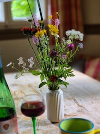 Nuestro apartamento en la casa Bacmeister se encuentra en Vorderdorf, en las afueras del oeste del pueblo, en una parcela ajardinada de casi 4.000 metros cuadrados, que bordea un arroyo en el oeste, el Menzenschwalder Alb. El acceso directo del apartamento en la planta baja al gran jardín es ideal para unas vacaciones relajantes para familias con niños.
