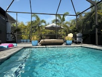 This beautiful new home built in 2020, has everything you need to enjoy your time away with loved ones in your private oasis. Your private heated pool, Hot tub, fire pit, and sun shelf to pamper yourself under the palm trees awaits!